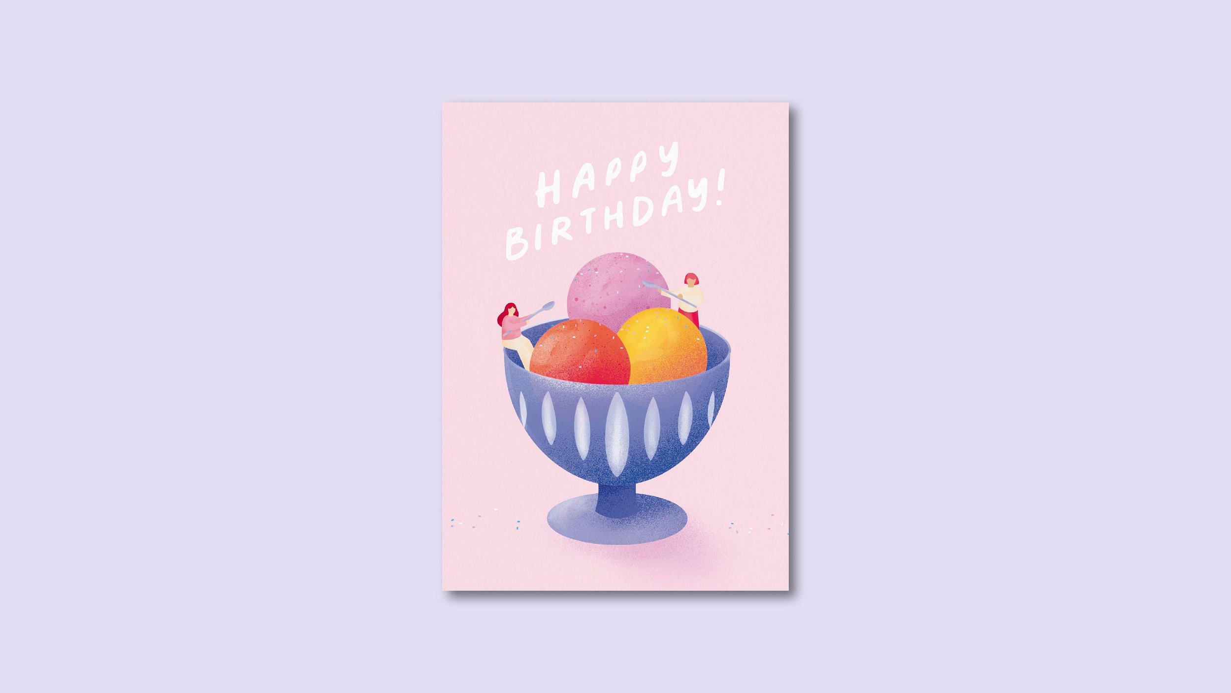 Happy Birthday – A6 Postkarte Geburtstagskarte Eisbecher