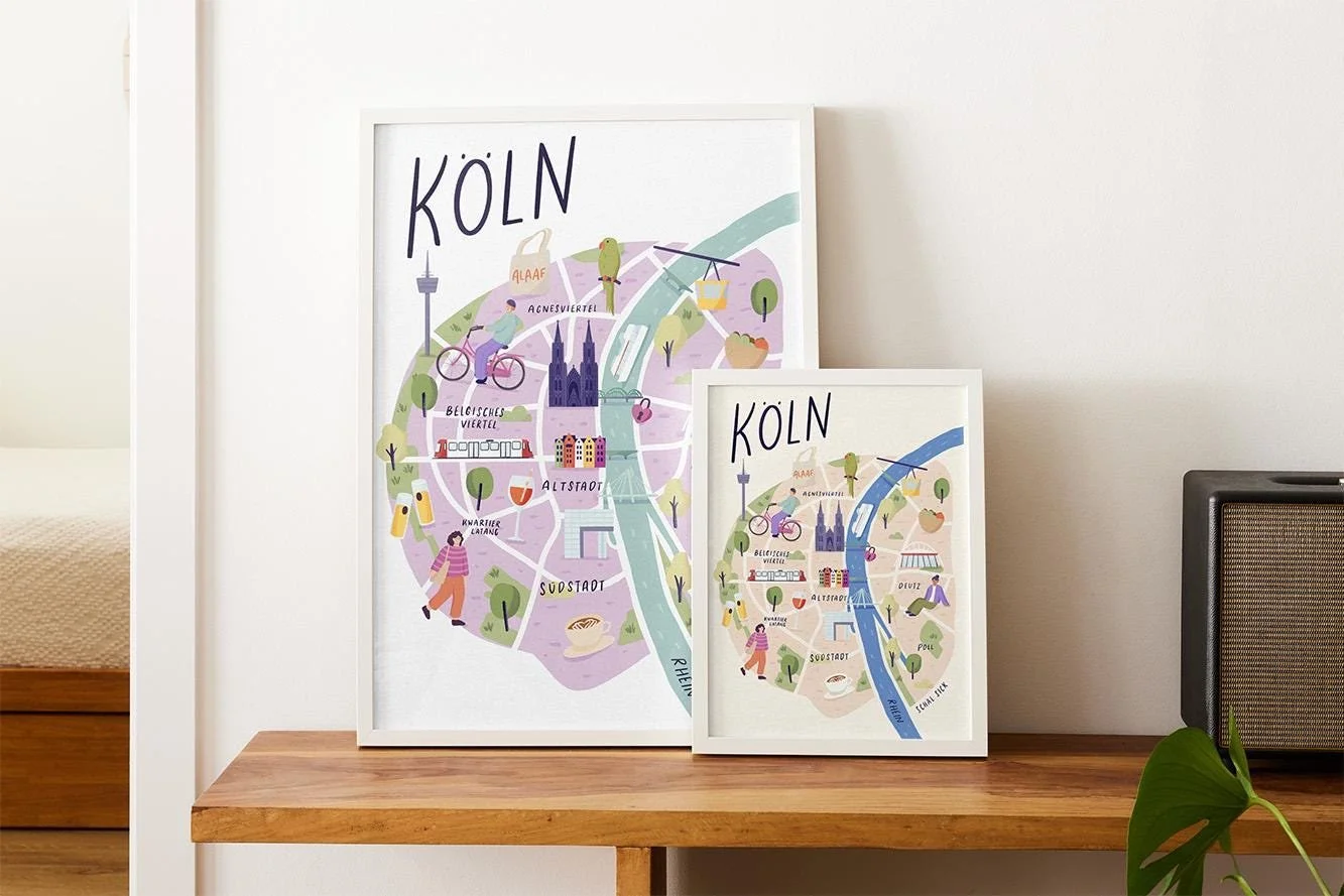 Bitte beachte, dass die gedruckten Farben von den digitalen Farben der Illustration leicht abweichen können. Der Print im A3 Format (29,7 × 42 cm) wird in einer Versandrolle versendet.
